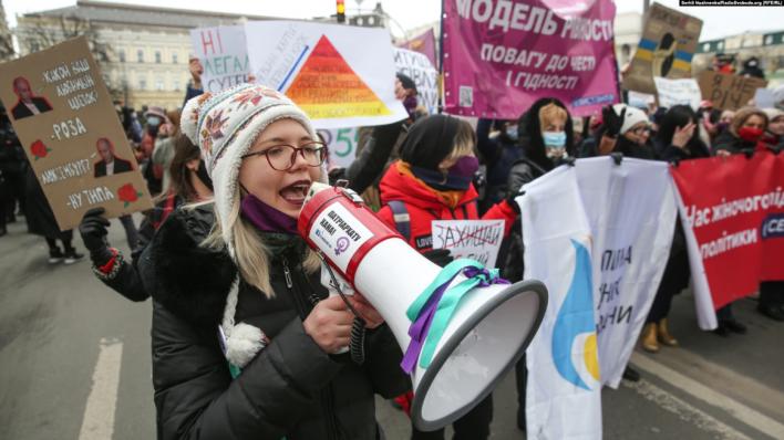 У центрі Києва 8 березня відбулася акція «Марш жінок», учасники якої вимагали від депутатів ратифікувати Стамбульську конвенцію і виступали за ґендерну рівність у суспільстві.