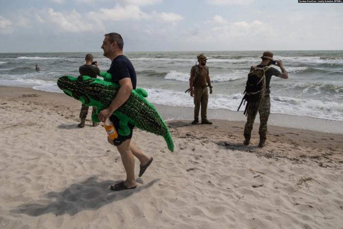 Українські військові фотографують море під час короткої реабілітаційної програми для підрозділів передової лінії оборони, Кінбурнська коса, 27 червня 2021 року