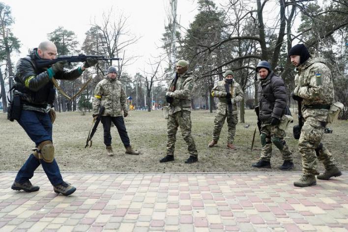 Російські війська зустрічають запеклий опір, особливо в українських містах та поблизу них, оскільки чоловіки та жінки вступають у загони територіальної оборони та формують власні місцеві ополчення.