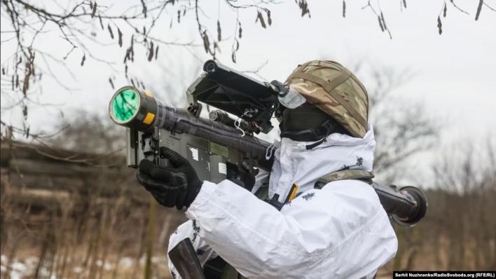 Український військовий тримає ПЗРК Stinger під час спільних навчань Збройних сил, Нацгвардії та СБУ біля кордону з Білоруссю