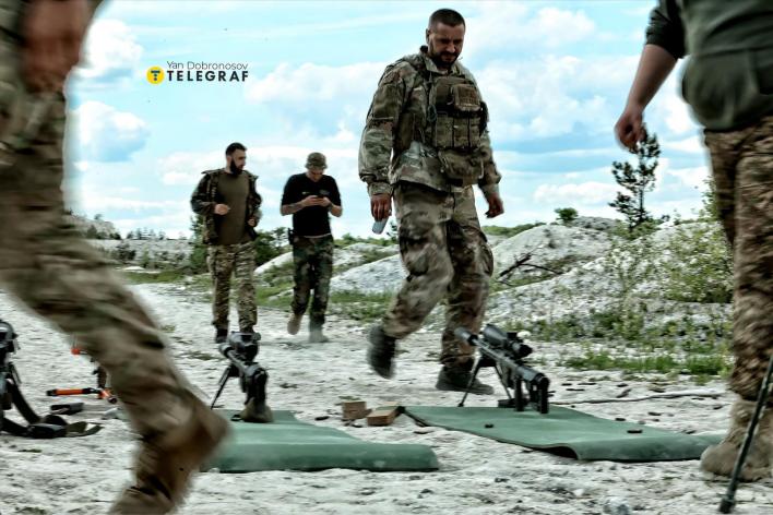 Ян Доброносов, фотограф: "Снайпери на Донеччині. Вони мають витримку. В їх праці маленька похибка на маленькій відстані це велика похибка на великій відстані. Кожен елемент який важить декілька грам може мати вплив на точність пострілу! Ці хлопці постійно ходять на позиції, а тут вони налаштовують свої гвинтівки та навички".