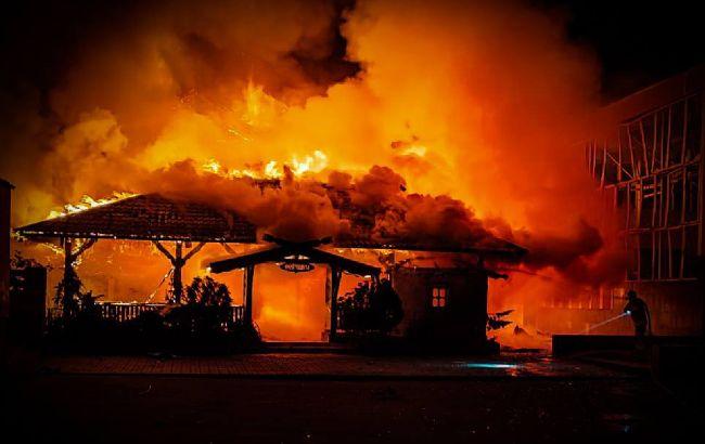 Крім того, в іншому районі спалахнули ресторанний комплекс й торгівельні павільйони. Пожежу локалізовано на площі 1400 квадратних метрів. Триває ліквідація загоряння.