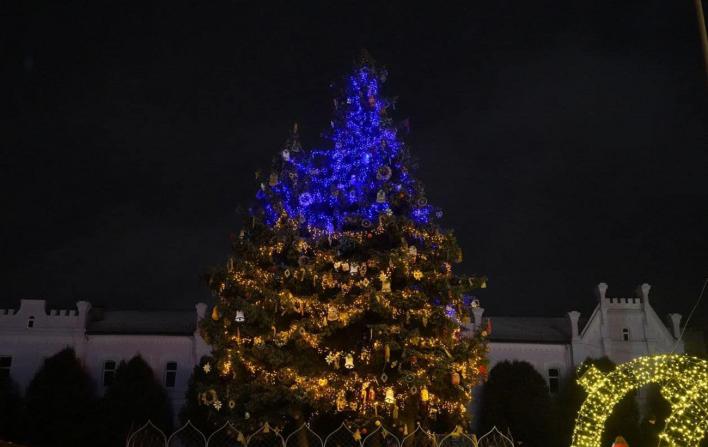 Цьогоріч головну ялинку у місті Чернівці засвітили вперше за час повномасштабної війни. Штучне дерево прикрасили лише гірляндами. 18-метрову ялинку встановили у районі Соборної площі на проїжджій частині - навпроти скверу Дня вишиванки.