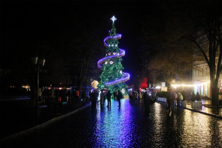 Цьогоріч головну ялинку Одеси встановили на вулиці Дерибасівській. Штучне дерево належить місту. Висота одеської ялинки - 20 метрів. Окрім новорічної красуні, у місті традиційно встановили новорічні фігури, біля яких можна зробити фото.
