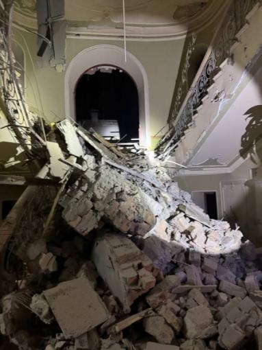 Крім того, мер Одеси Геннадій Труханов показав кадри однієї з постраждалих будівель в історичному центрі ЮНЕСКО.