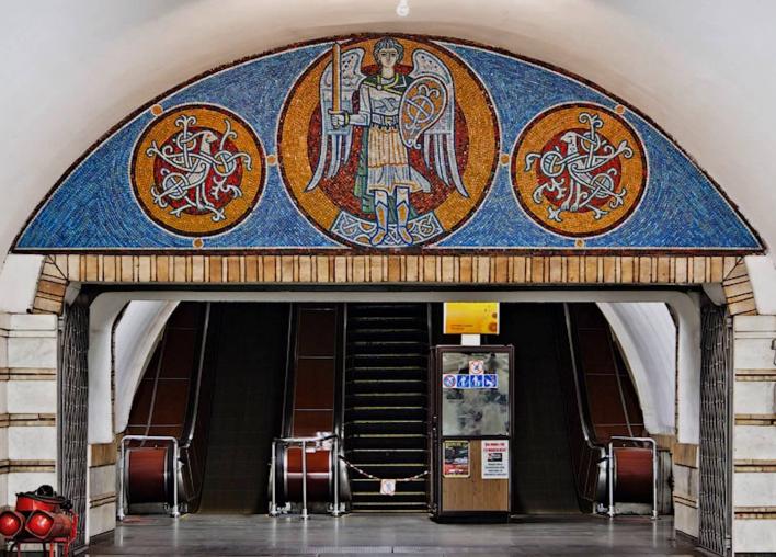 Стіни станції прикрашені понад 300 мозаїчними панно, на яких зображені давньоруські князі, церкви, орнаменти в стилі Русі. Над їх створенням працювали видатні українські художники Григорій Корінь, Володимир Федько.