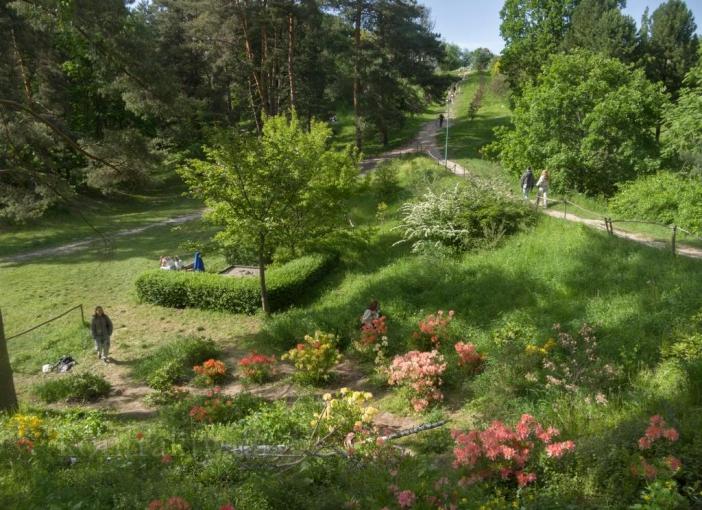 З весни до осені цвітіння різних рослин відбувається майже безперервно: це і всім знайомі, ніби обсипані снігом кущі спіреї, і карагна, яку часто помилково називають жовтою акацією, і різні сорти гортензій, і символ міста — каштан (а тут є навіть їстівні сорти) і багато фруктових дерев. Все літо буяє «Сад троянд», а на ділянці «Пори року» декоративні квіти ростуть до пізньої осені. Варто згадати, що значна кількість рослин опилюється вітром, тож їхні квіти пересічною людиною не визначаються як власне квіти. Деякі рослини ховаються буквально в хащах, їх побачити буде великою удачею. Серед магнолій є такі, що квітнуть аж у липні. В різний час розпускаються рододендрони. Є вічнозелені сорти, і дивно зараз спостерігати листя та бруньки серед снігу. Проте в багатьох рослинах вегетація запустилася ще на початку цього року. Сподіваємось, вони не померзнуть. І вже майже місяць, як почали розпускатися азалії в оранжереї. Зазвичай цвітіння триває від середини лютого до середини березня, тож особливо багато людей тут на День закоханих та 8 березня.