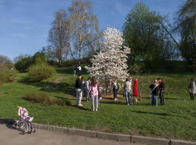 З весни до осені цвітіння різних рослин відбувається майже безперервно: це і всім знайомі, ніби обсипані снігом кущі спіреї, і карагна, яку часто помилково називають жовтою акацією, і різні сорти гортензій, і символ міста — каштан (а тут є навіть їстівні сорти) і багато фруктових дерев. Все літо буяє «Сад троянд», а на ділянці «Пори року» декоративні квіти ростуть до пізньої осені. Варто згадати, що значна кількість рослин опилюється вітром, тож їхні квіти пересічною людиною не визначаються як власне квіти. Деякі рослини ховаються буквально в хащах, їх побачити буде великою удачею. Серед магнолій є такі, що квітнуть аж у липні. В різний час розпускаються рододендрони. Є вічнозелені сорти, і дивно зараз спостерігати листя та бруньки серед снігу. Проте в багатьох рослинах вегетація запустилася ще на початку цього року. Сподіваємось, вони не померзнуть. І вже майже місяць, як почали розпускатися азалії в оранжереї. Зазвичай цвітіння триває від середини лютого до середини березня, тож особливо багато людей тут на День закоханих та 8 березня.
