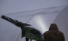 На фото кореспондента РБК-Україна можна помітити, що внаслідок атаки російського дрона в саркофазі Чорнобильської АЕС з'явилася пробоїна.