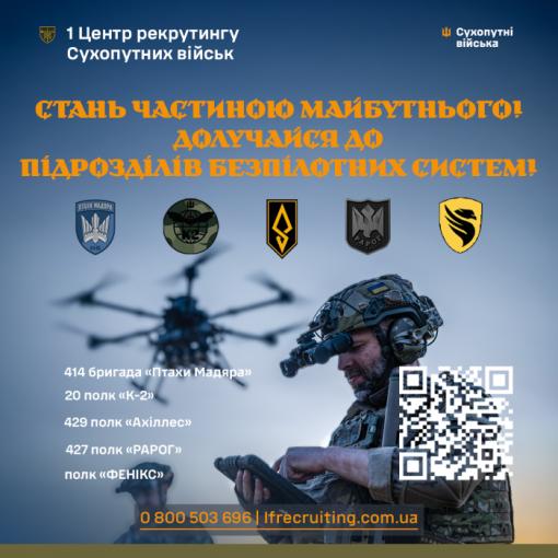 Найчисленніший підрозділ, що здійснює набір у Сухопутні війська України, – це 1 Центр рекрутингу, розташований у Києві. Його фахівці, які самі мають бойовий досвід, допомагають кандидатам знайти відповідну вакансію та військову частину, враховуючи їхній цивільний досвід, навички та бажання.