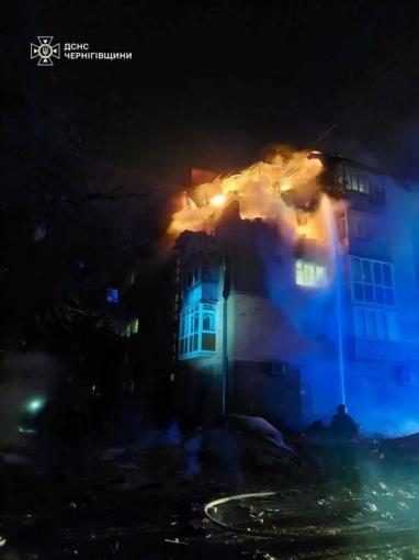 "Увечері 15 березня ворог ударив безпілотниками по Чернігову. У межах міста – влучання "Шахедів". Ворог уразив пʼятиповерхівку, зруйновано 2 верхніх поверхи. Також терористи вдарили по приватному сектору", – йдеться у повідомленні.
