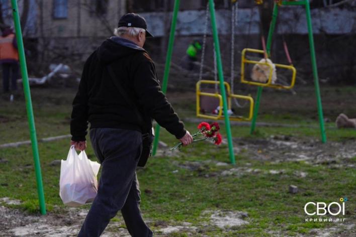 Станом на ранок рятувальна операція у Кривому Розі завершилася, але наслідки атаки досі ліквідовують. Люди несуть квіти, солодощі й іграшки зі стрічками на дитячий майданчик, щоб вшанувати пам'ять загиблих.