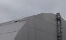 Загальний вигляд нового конфайнменту (укриття або нового «саркофагу») над зруйнованим четвертим енергоблоком ЧАЕС. На фото добре видно слід від удару шахедом, якого Росія завдала по цьому об'єкту у лютому 2025 року