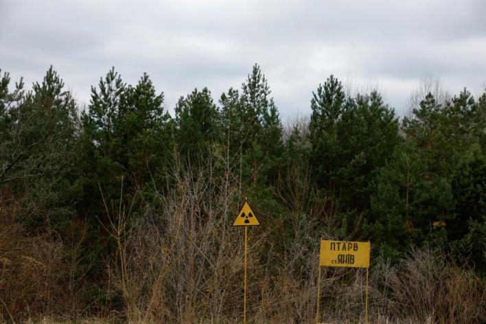 Знаки про радіаційну небезпеку в «рудому лісі» біля ЧАЕС