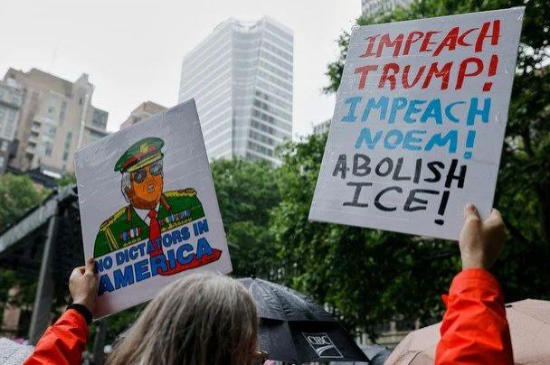 Ці протести стали найбільшим виявом опозиції до американського лідера з моменту його повернення до влади в січні цього року та відбулися того ж дня, коли тисячі військовослужбовців та військової техніки пройдуть маршем на параді, який офіційно приурочений до 250-річчя армії США, а неофіційно вважається подарунком до дня народження Трампа.