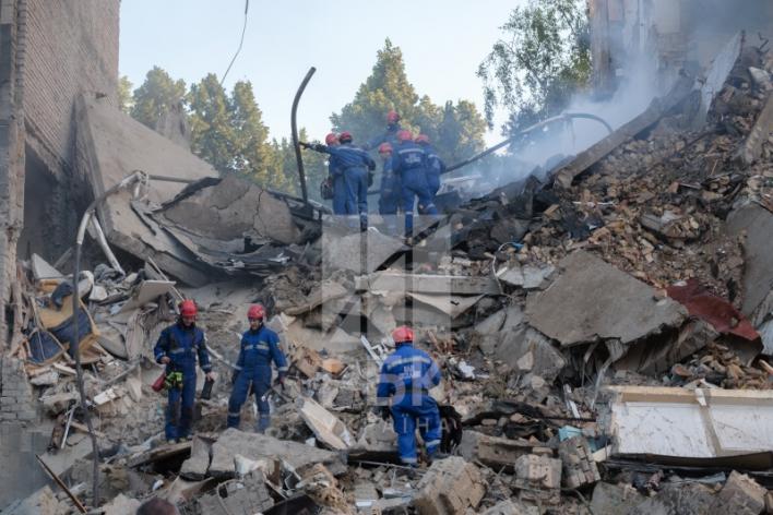 Російські окупанти вдарили по багатоповерхівці в Солом'янському районі Києва балістичною ракетою. Під завалами опинилися люди.