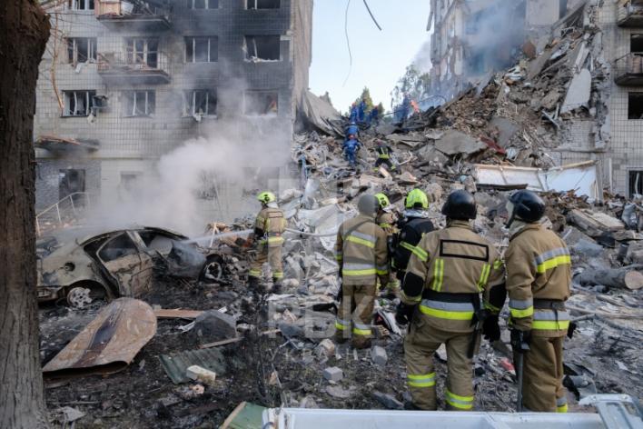Російські окупанти вдарили по багатоповерхівці в Солом'янському районі Києва балістичною ракетою. Під завалами опинилися люди.