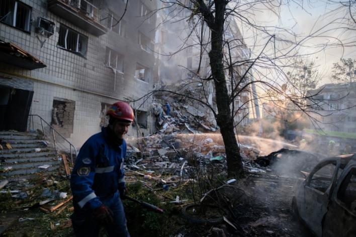 Російські окупанти вдарили по багатоповерхівці в Солом'янському районі Києва балістичною ракетою. Під завалами опинилися люди.
