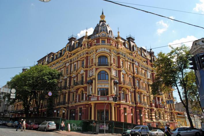 Одна з найпомітніших споруд історичного центру Києва визнана шедевром неоренесансу. Розкішну бордову будівлю з незліченними колонами, скульптурами та оздобленням вікон і красивим шпилем на даху не можна не помітити.