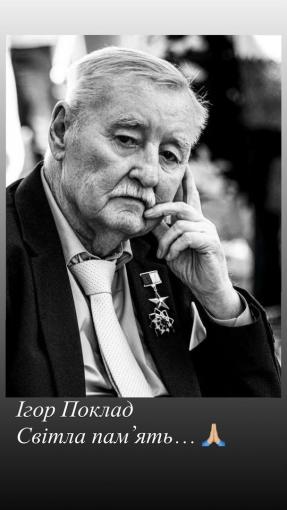 "Скрипка грає…Серце крає…". Крається серце від сумної звістки… Не стало Ігоря Дмитровича Поклада. Кожна мелодія геніального Маестро буде звучати в наших серцях вічно…Мелодії всесвіту, щастя, смутку, розпачу, болю, величі, любові, мелодії України…Глибокі співчуття дружині композитора, пані Світлані Поклад", - висловилася акторка.