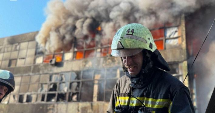 У Шевченківському районі пошкоджено житлові багатоповерхівки та офісні будівлі. Пожежі спалахнули на дахах, балконах та техповерхах. Також повідомляється про постраждалих.