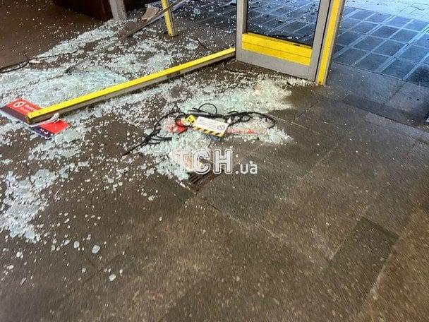 Зокрема, вхід на станцію та все довкола усипано уламками.