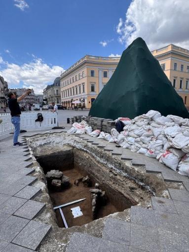 Ще 2021 року георадар показав аномалії на Приморському бульварі — і тепер розкопки підтвердили, що під пам’ятником Дюку збереглися залишки Хаджибейської фортеці.
