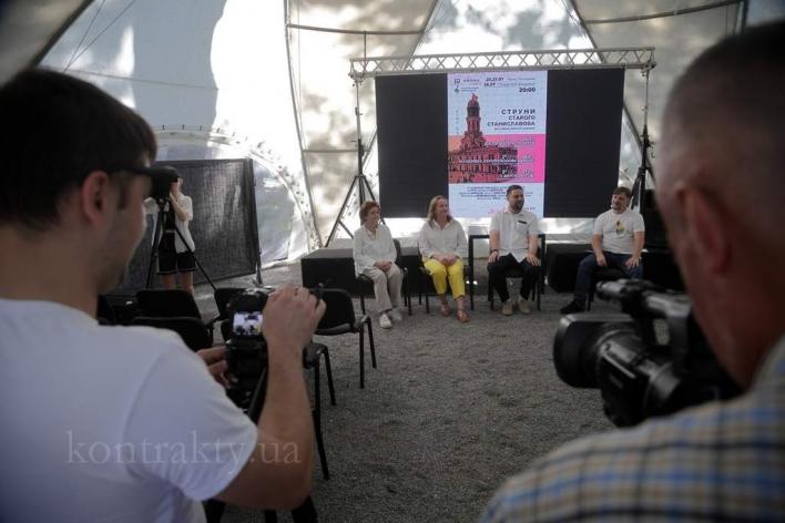 Зліва направо: Валентина Ковальська, Катерина Бойчук, Юрій Маршалик, Володимир Гайдар на прес-конференції, присвяченій фестивалю класичної музики «Струни старого Станиславова». Музей «Палац Потоцького», 23.07.2025
