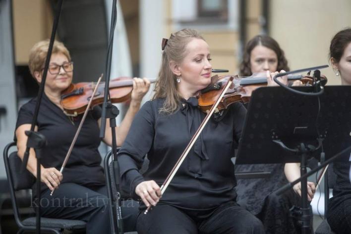 Катерина Бойчук, скрипка, на концерті другого дня фестивалю класичної музики «Струни старого Станиславова». Площа перед Івано-Франківської обласною філармонією імені Ірини Маланюк, Івано-Франківськ, 26.07.2025