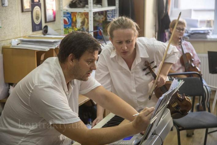Владислав Пірус, клавіші, та Катерина Бойчук, скрипка, на репетиції оркестру перед фестивалем класичної музики «Струни старого Станиславова». Івано-Франківська обласна філармонія імені Ірини Маланюк, 23.07.2025