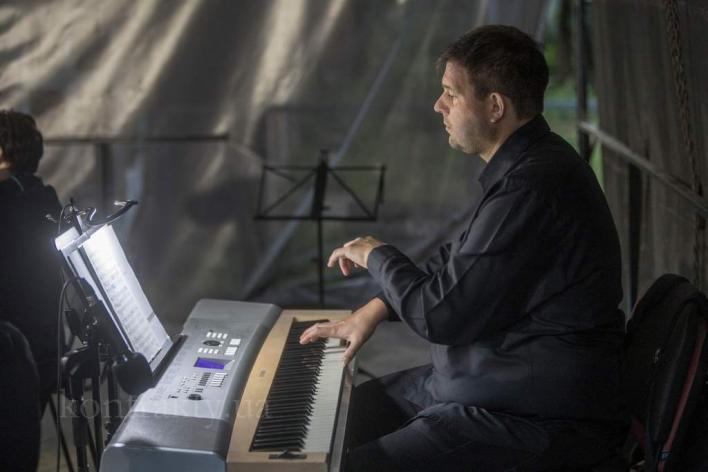 Владислав Пірус, клавіші, на концерті третього дня фестивалю класичної музики «Струни старого Станиславова». Палац Потоцьких «Простір інноваційних креацій „Палац“», 27.07.2025