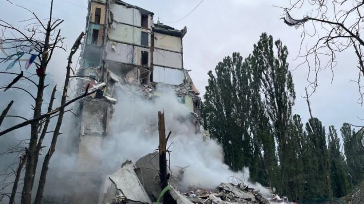 Як наслідок ворожої атаки є численні пошкодження житлової інфраструктури, а в одному зі спальних районів у багатоповерхівці зруйновано цілий під’їзд.