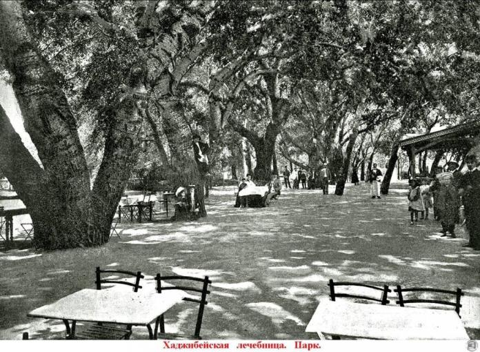 Також на фото можна побачити парк на Хаджибейському лимані поблизу кінцевої зупинки очеретяного трамвая. Раніше там функціонувала велика грязелікарня, нині ж залишилися лише санаторій і очерети.