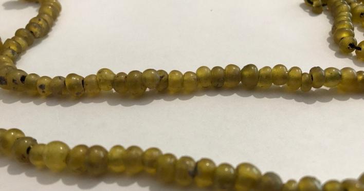 Унікальний артефакт складається з 289 скляних намистин: 288 із них мають жовто-бурштинове забарвлення, ще одна вирізняється ніжно-блакитним кольором.