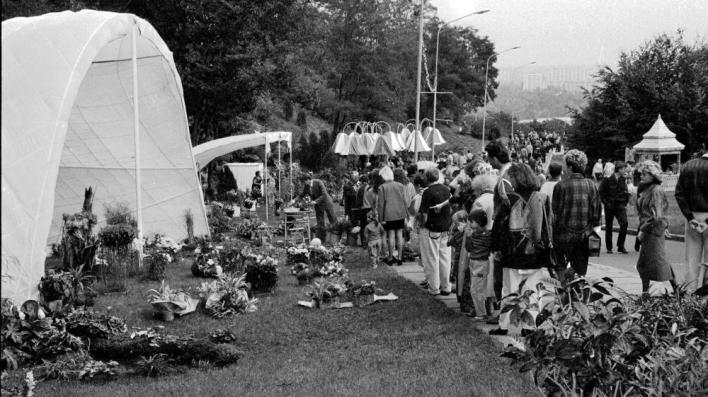 Який вигляд мала традиційна виставка квітів на Співочому полі в Києві у 1994. Архівні фото