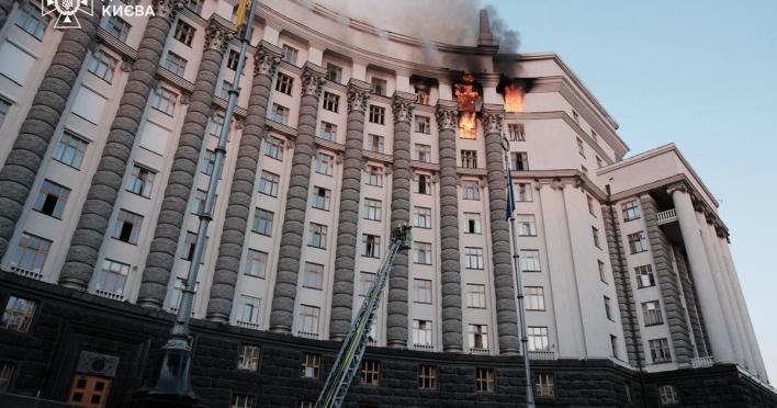 У Києві через ворожу атаку пошкоджена будівля Кабміну, дах і верхні поверхи. Рятувальники гасять пожежу. Пише ТСН. Про це повідомляють Контракти.UA.