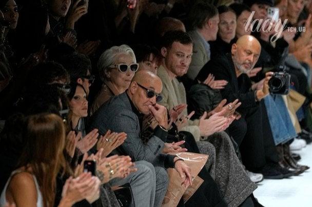 Під час показу колекції весна-літо 2026 року актори сиділи в першому ряду. Річ у тім, що зараз триває виробництво сиквела картини, і частину матеріалу творці фільму вирішили відзняти на справжньому модному показі.