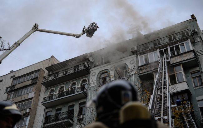 У центрі Києва з вечора горить багатоповерхівка: фото та відео наслідків пожежі