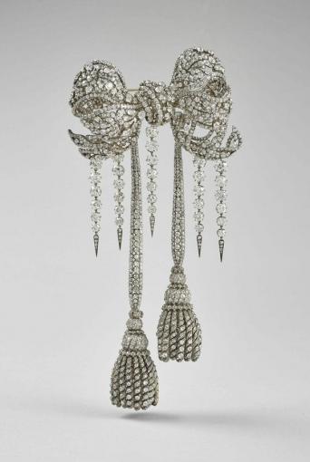 Однак уже 1864 року імператриця відмовилася носити настільки масивну прикрасу і вирішила зберегти тільки бант, який був перероблений на брошку для корсажа — каскадна композиція зі «стрічок» і «китиць», що спадала, мала доходити до талії. Попри масивність, прикраса була гнучкою.