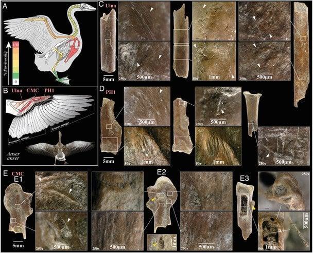 Побутова версія: Одна з початкових гіпотез припускала, що птах міг бути зображений як здобута дичина, яку жінка несе до поселення.