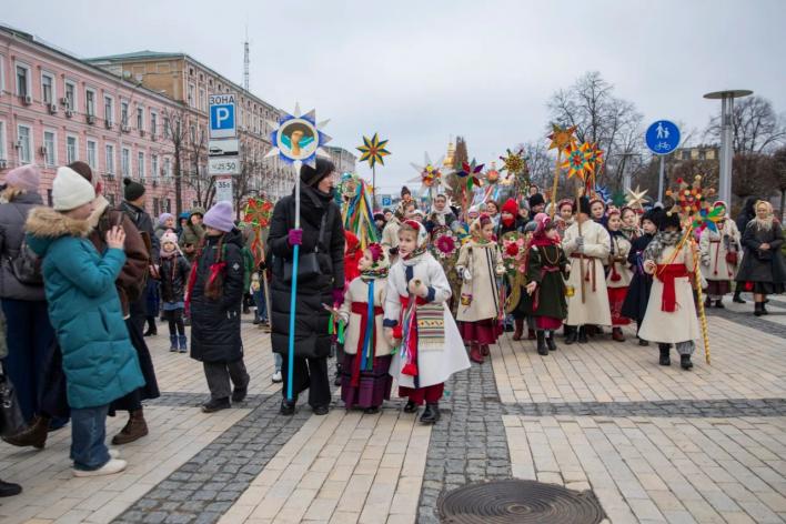 Люди також несли зірки за тих, хто поклав своє життя у війні за Україну. Ходу супроводжували колядки у виконанні київських фольклорних гуртів.