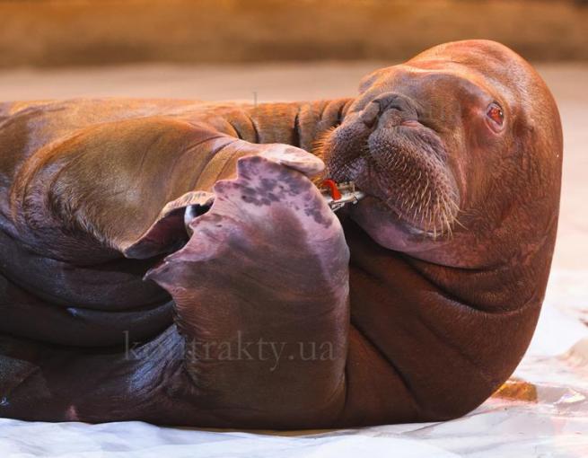 Морж Султан с дрессировщиком Сергеем Свищенко