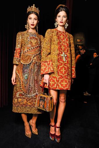 Знаменитый дом мод Dolce & Gabbana представил коллекцию осень-зима 2013-2014 на Неделе моды в Милане. Основной темой показа стали византийские фрески и мозаики, обильно украсившие наряды моделей.