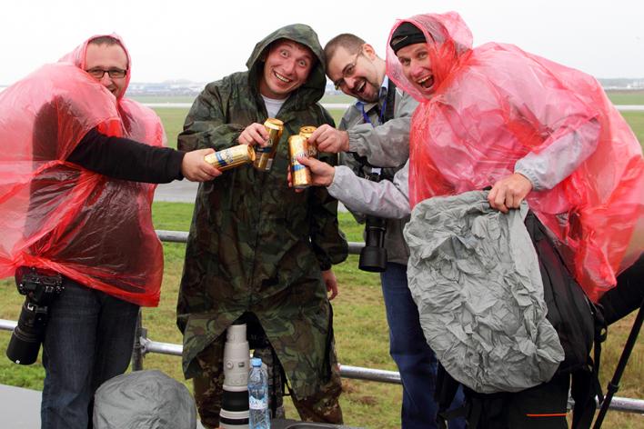 А журналистская братия не унывала даже в ливень и согревалась как могла