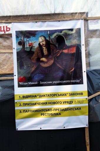 За время акций протеста на Майдане собралось большое количество плакатов, надписей и лозунгов. Практически все стены близлежащих домов, баррикады, новогодняя елка и все что окружает Майдан изобилует различной революционной "живописью".  Только посмотрев на них можно почувствовать атмосферу  событий, которые разворачиваются в самом сердце столицы вот уже нескольких месяцев. .