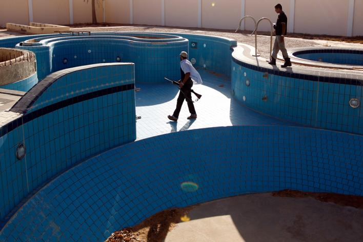 Повстанцы в бассейне на даче Муаммара Каддафи рядом с Абу Грейн, который находится к западу от Сирты. (Goran Tomasevic/Reuters)