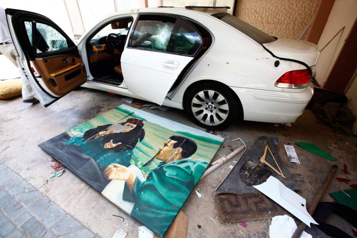 Разорванный портрет членов семьи Каддафи рядом с бронированной машиной в доме Ганнибала Каддафи. (Zohra Bensemra/Reuters)