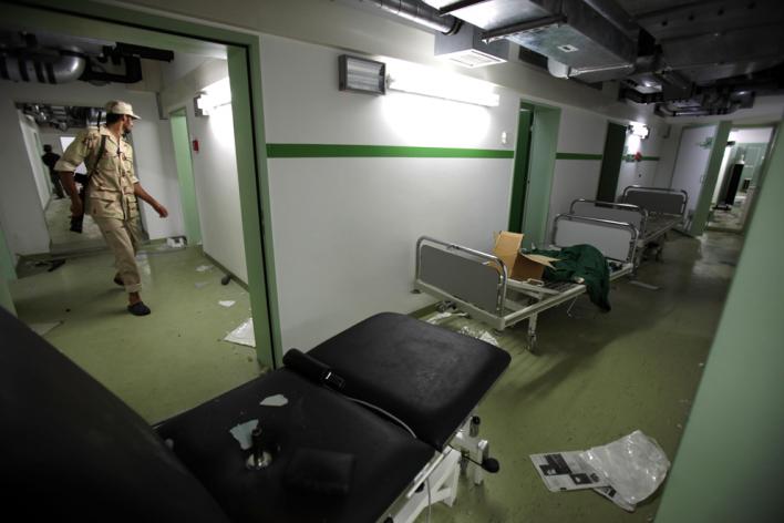 Ливийский повстанец осматривает клинику в подземной сети бункеров под усадьбой Муатассима Каддафи в Триполи. (Patrick Baz/AFP/Getty Images)