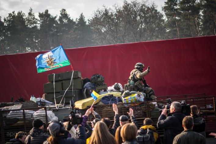 2 батальйон 95 Житомирской отдельной аэромобильной бригады отправляется домой в Житомирскую область. Это те самые ребята, которых прозвали "киборгами". Бойцы пробыли год на войне. Помимо Донецкого аэропорта десантники обороняли Славянск и Дебальцево. Киевляне встречали героев на Бориспольской трассе.