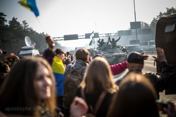 2 батальйон 95 Житомирской отдельной аэромобильной бригады отправляется домой в Житомирскую область. Это те самые ребята, которых прозвали "киборгами". Бойцы пробыли год на войне. Помимо Донецкого аэропорта десантники обороняли Славянск и Дебальцево. Киевляне встречали героев на Бориспольской трассе.